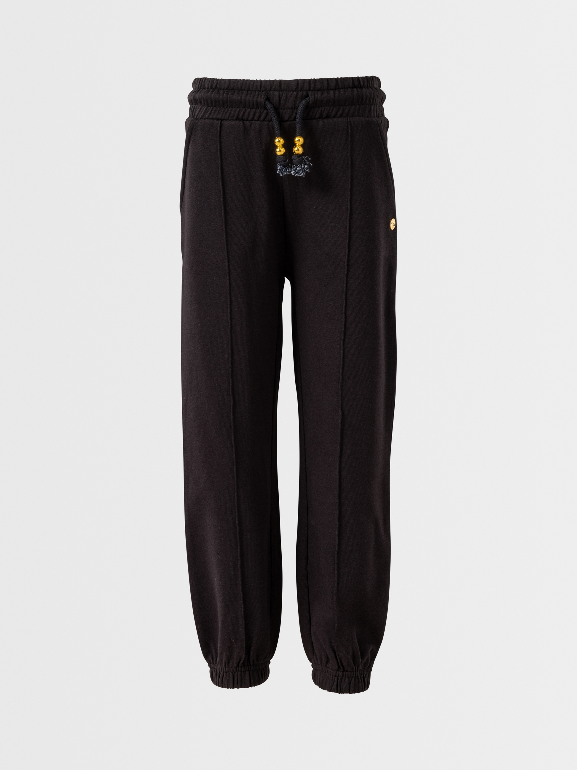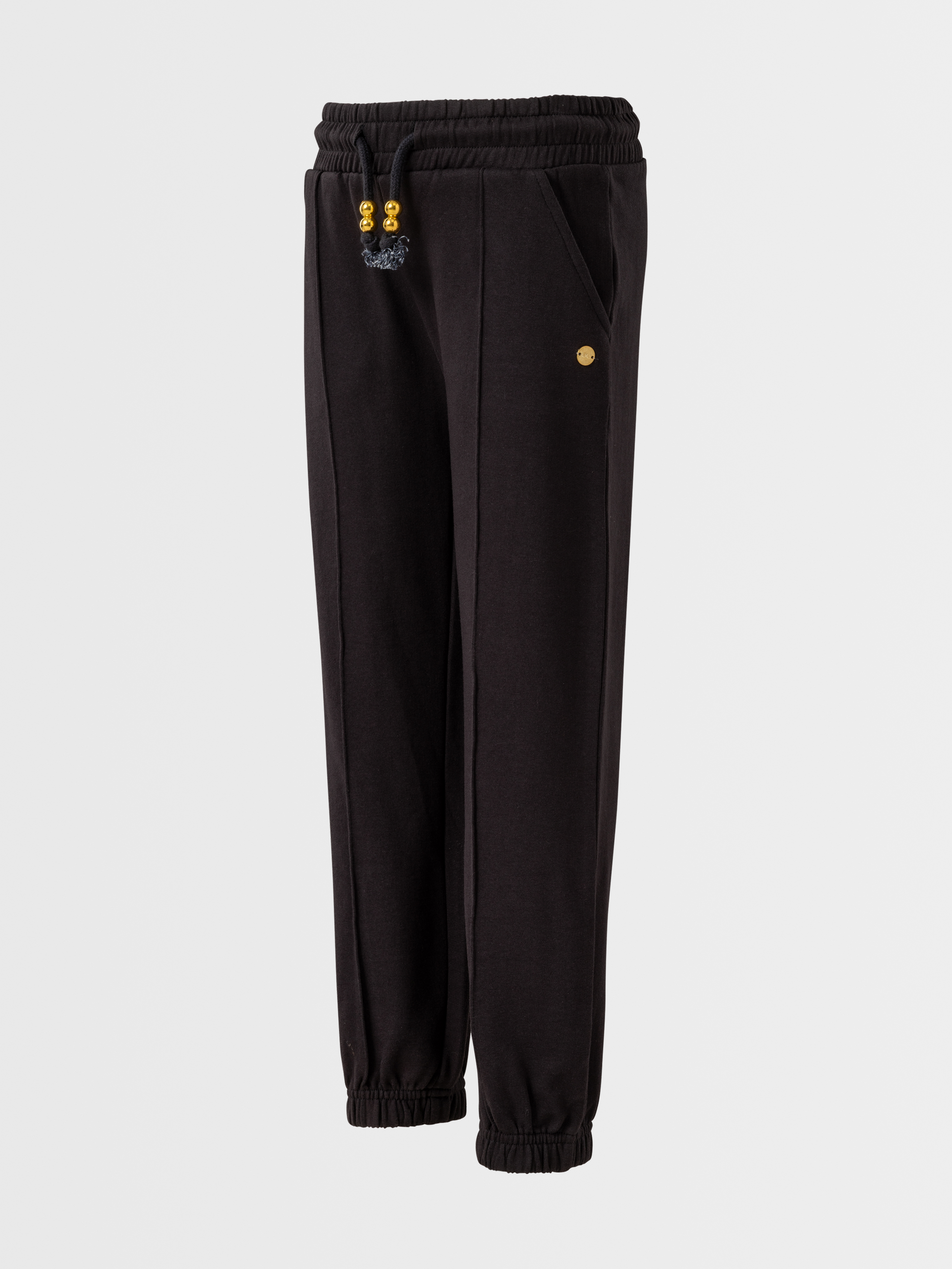 Ova djevojačka Lucky Kiddo trenirka na prvi je pogled jednostavna, ali skriva pravu modnu priču. Elegantna dekorativna crta i sjajni zlatni detalji na vezici dodaju pravu mjeru iskričavosti kako bi vaša djevojčica zablistala – bilo na igralištu ili u šetnji gradom. Vezica u struku i elastika na nogavicama osiguravaju da trenirka uvijek lijepo ostane na mjestu – čak i tijekom najživlje igre. Udobnost koja sjaji sa stilom!