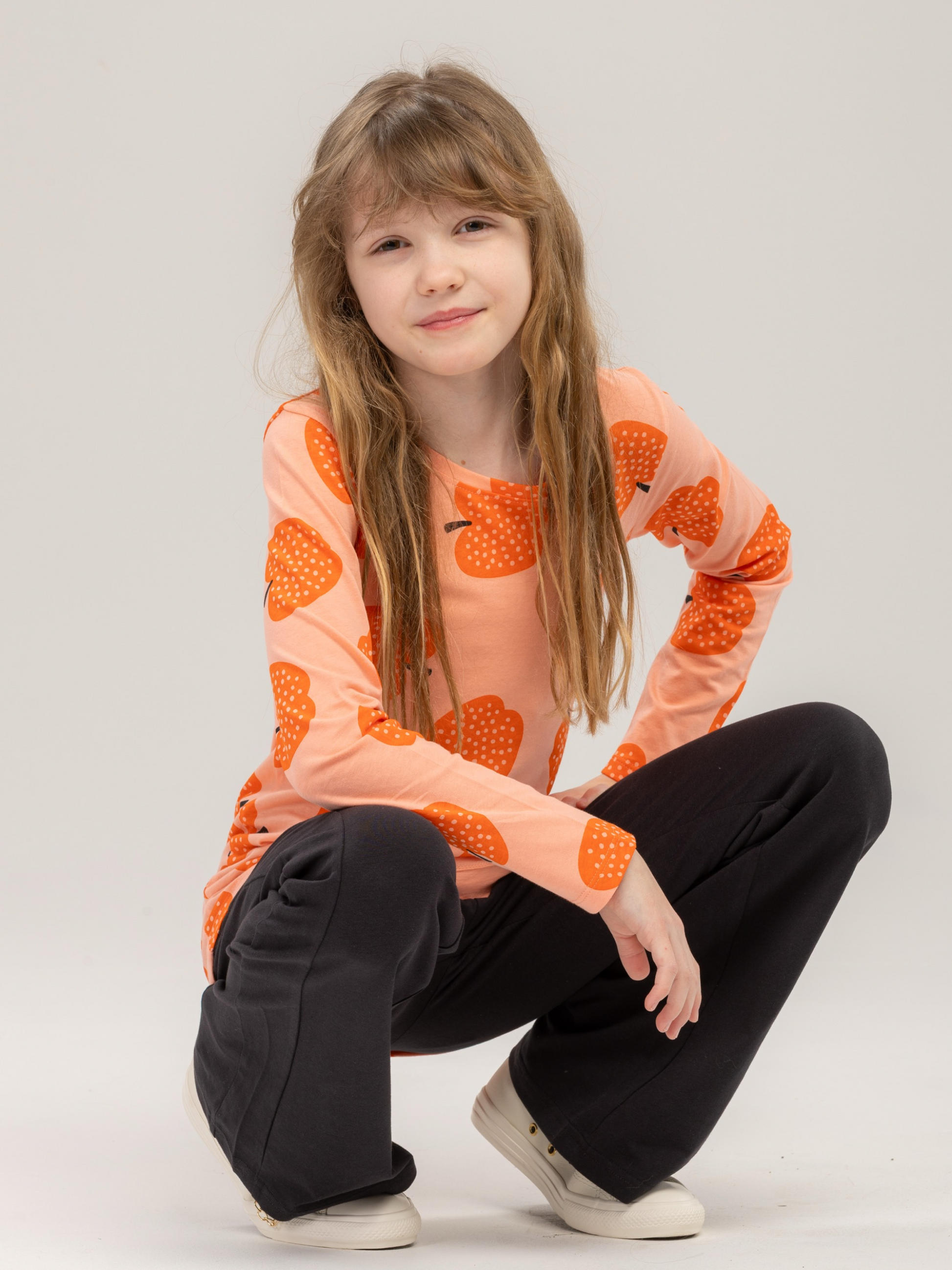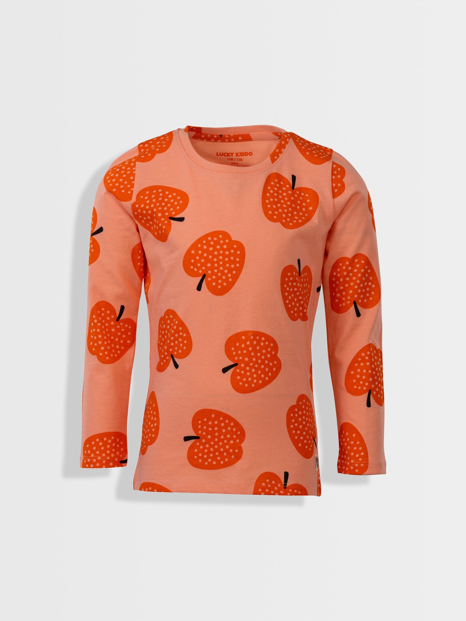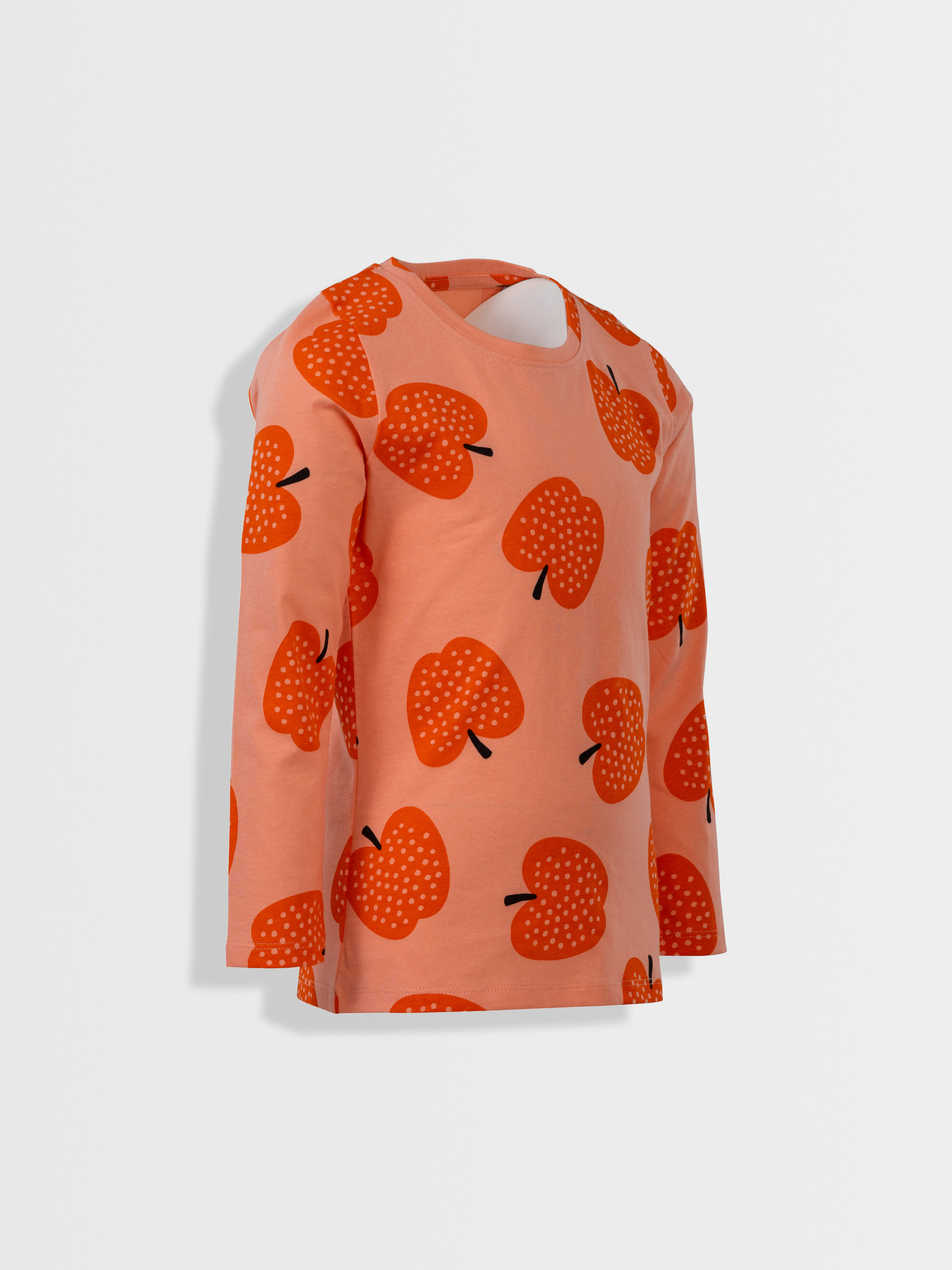 Majica dugih rukava za djevojčice nježne boje breskve s printom sočnih jabuka.