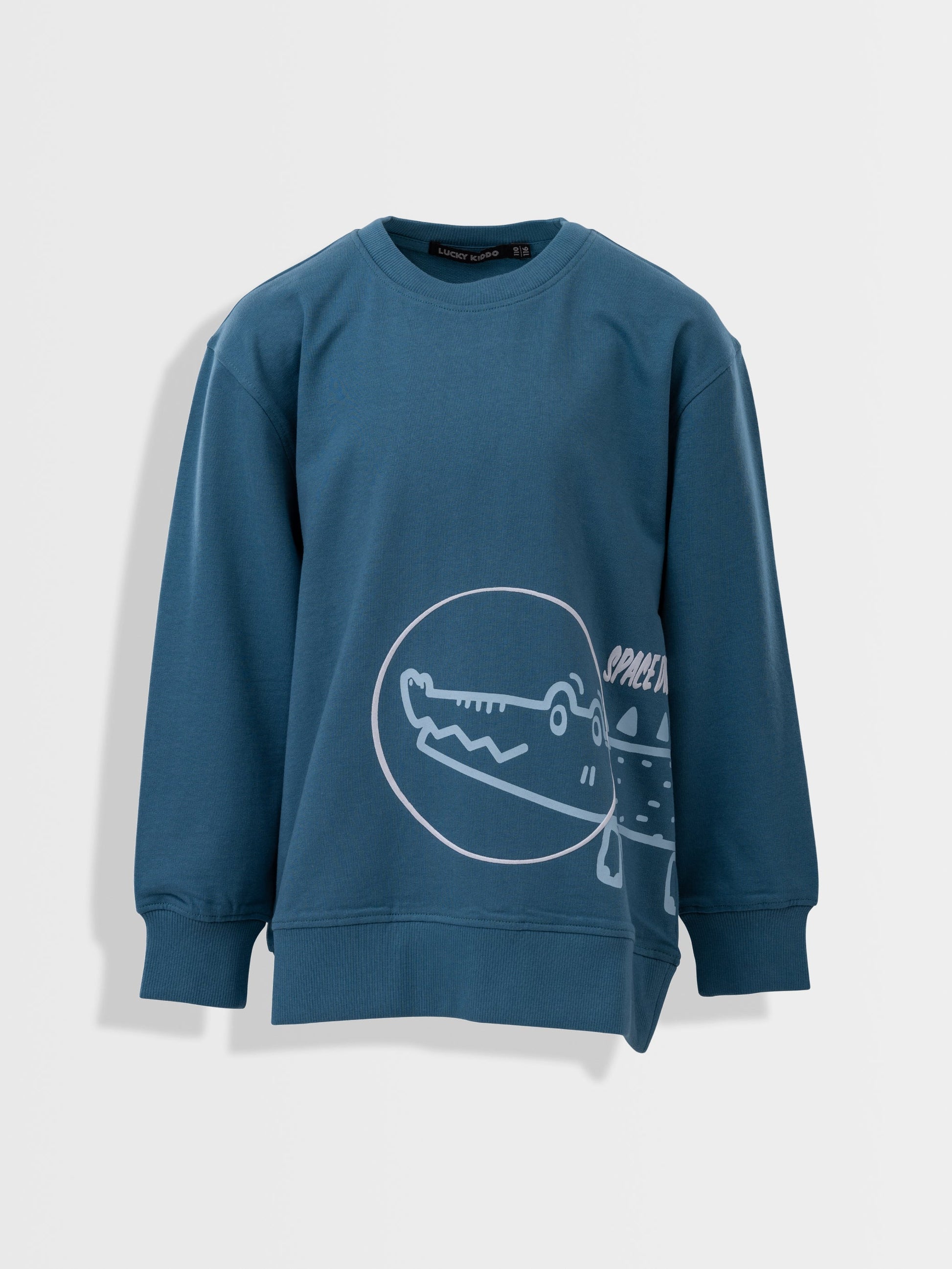 Preveliki pulover s okruglim izrezom i printom svemirskog krokodila.